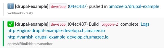 As soon as Lagoon is done building and deploying it will send a second notification to the chat system, here an example:
