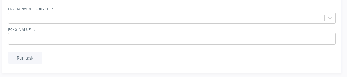 The first, ENV_VAR_NAME_SOURCE is an example of type ENVIRONMENT_SOURCE_NAME, which will present the user of the UI a dropdown of the different environments inside of a project. If we don't want to allow the task to be run on the invoking environment (say, if we want to import a database from another environment), we can restrict the environment list by using ENVIRONMENT_SOURCE_NAME_EXCLUDE_SELF.